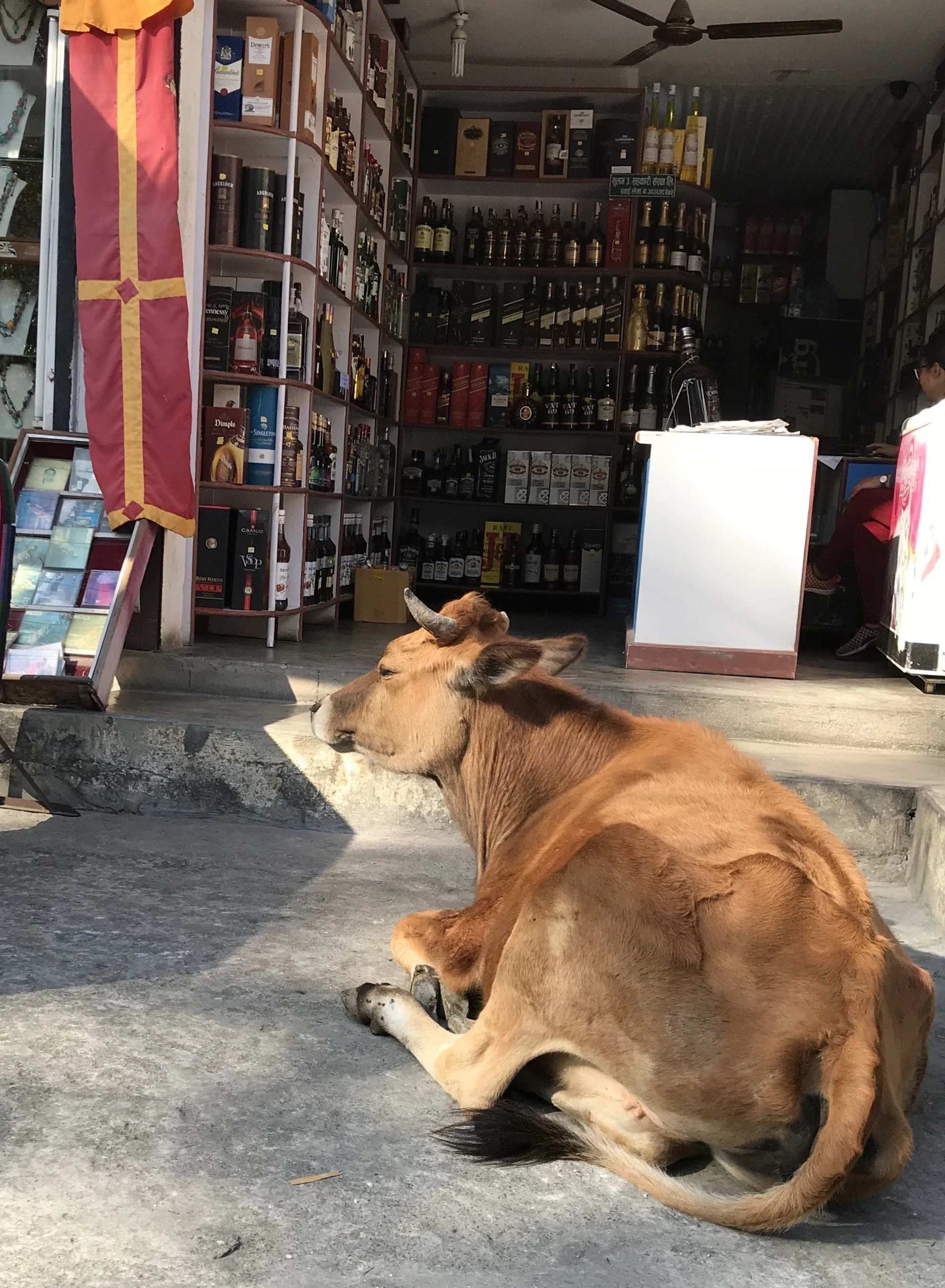 One thing that really left a lasting impression was all the cattle roaming the streets. My cab was stopped on three occasions because a cow was blocking the road. Then a bus driver had to honk his horn to get past a bull and cow mating in the middle of the street. At the liquor store, I virtually had to climb over a lovely tan-coloured cow having an afternoon siesta stretched out across the entrance. I asked, but no one seemed to know who they belonged to. In fact, they found my question odd. The cows just live there, eat whatever and sleep wherever their fancy takes them.